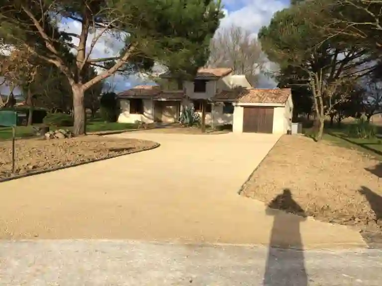 Un chemin en castine, tissé avec élégance, offre une voie naturelle où la simplicité rencontre la beauté, créant une harmonie entre la nature et le passage du temps
